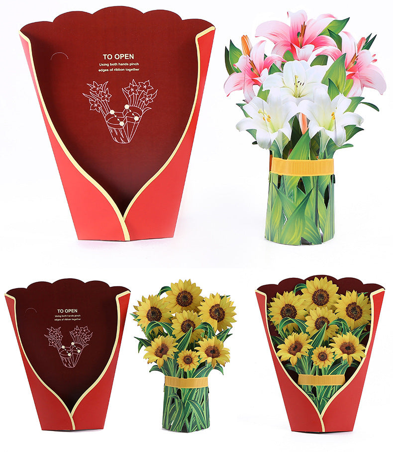 Colourful Lilies or Sunflowers Pop Up Card | Birthday | Wedding | Greeting Card | Valentines Day Card | Engagement Gift | Mothers Day Card