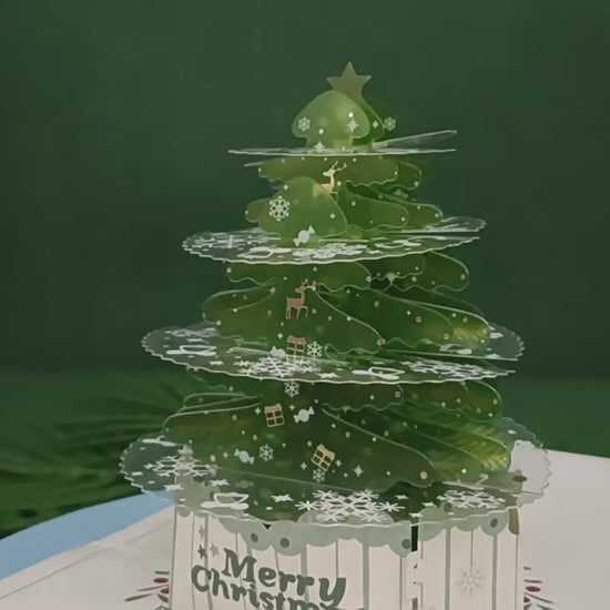 Green Crystal Christmas Tree Pop Up Card | Xmas | 3D Card | Greeting Card | PVC | Paper