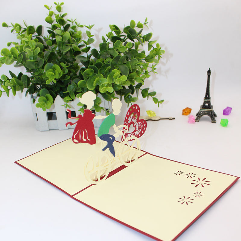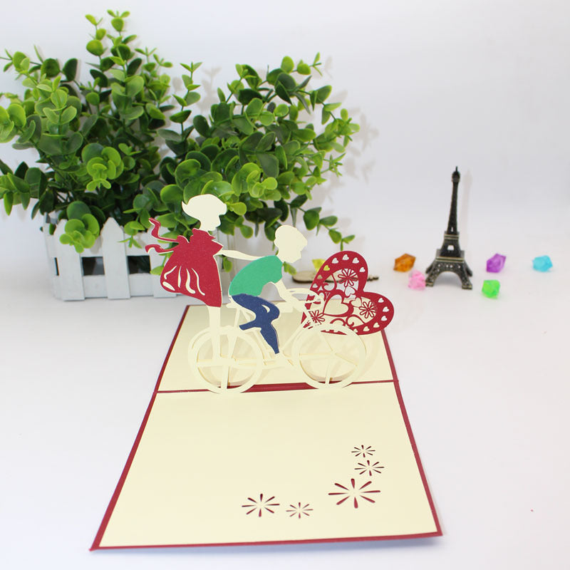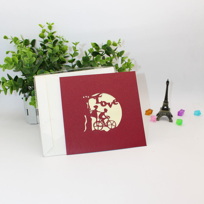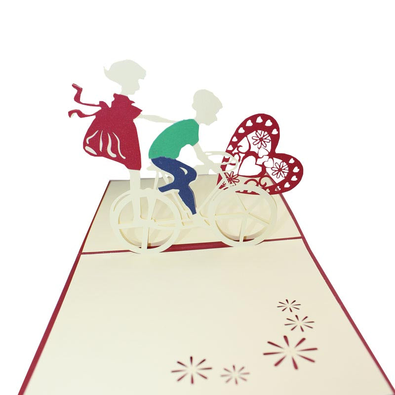 Style 1 - Pair of lovers on the bicycle with a red heart in front of them. Front cover displays round window with lovers and 'love' inscription.